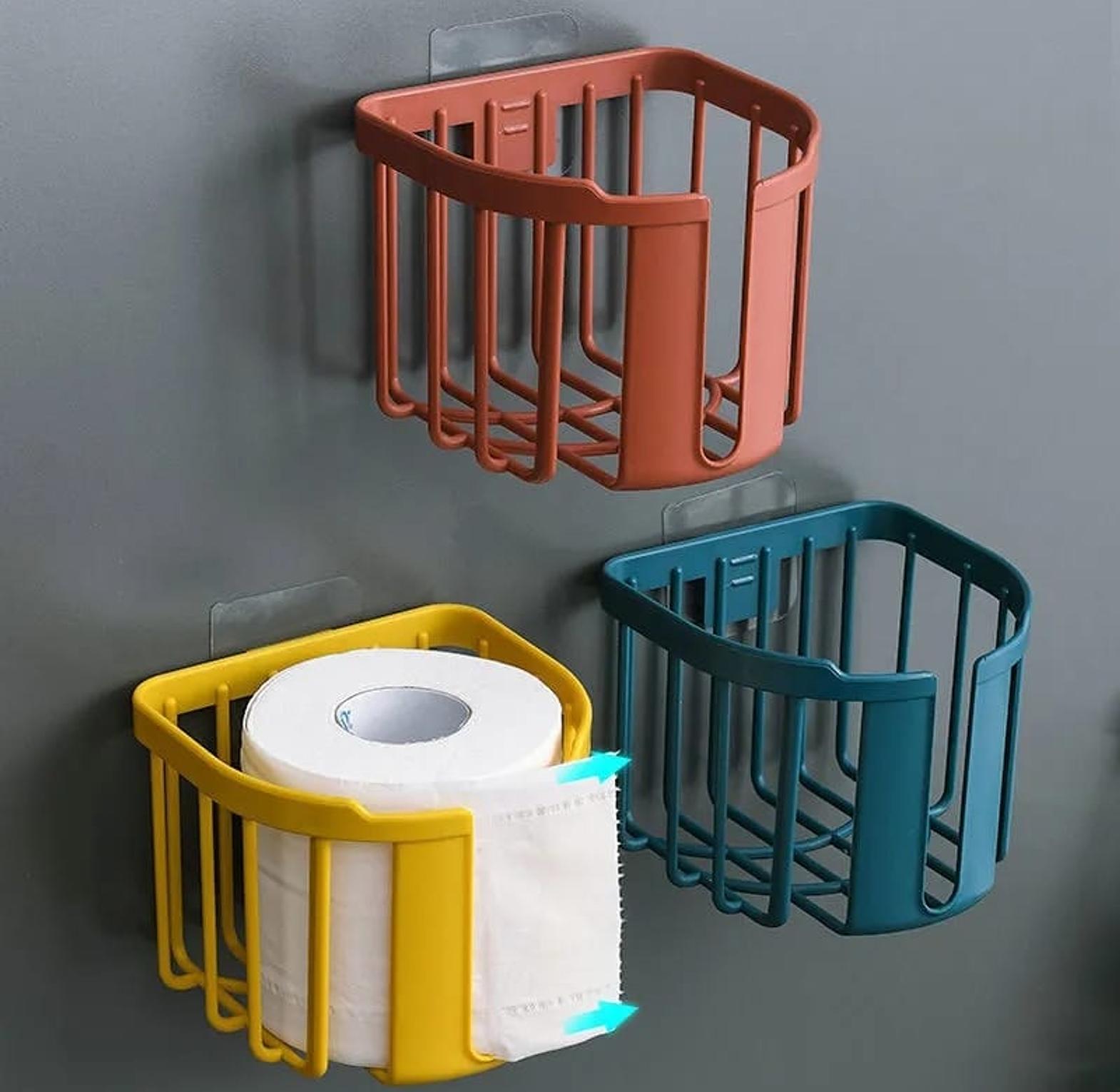 Punch-Free Toilet Paper Holder Shelf Bathroom Kitchen Tissue Box Wall-Mounted Sticky Paper Storage Box Toilet Paper Holder Roll