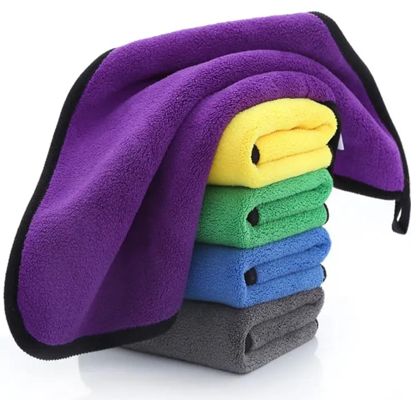 Super absorbent coral fleece kitchen towels Pack of 4 (brown, blue, yellow, purple)