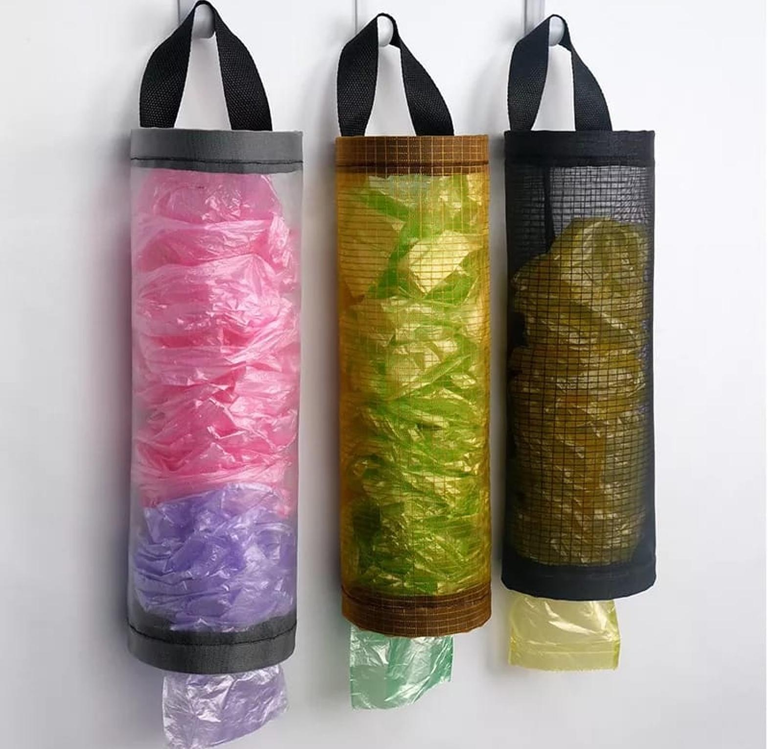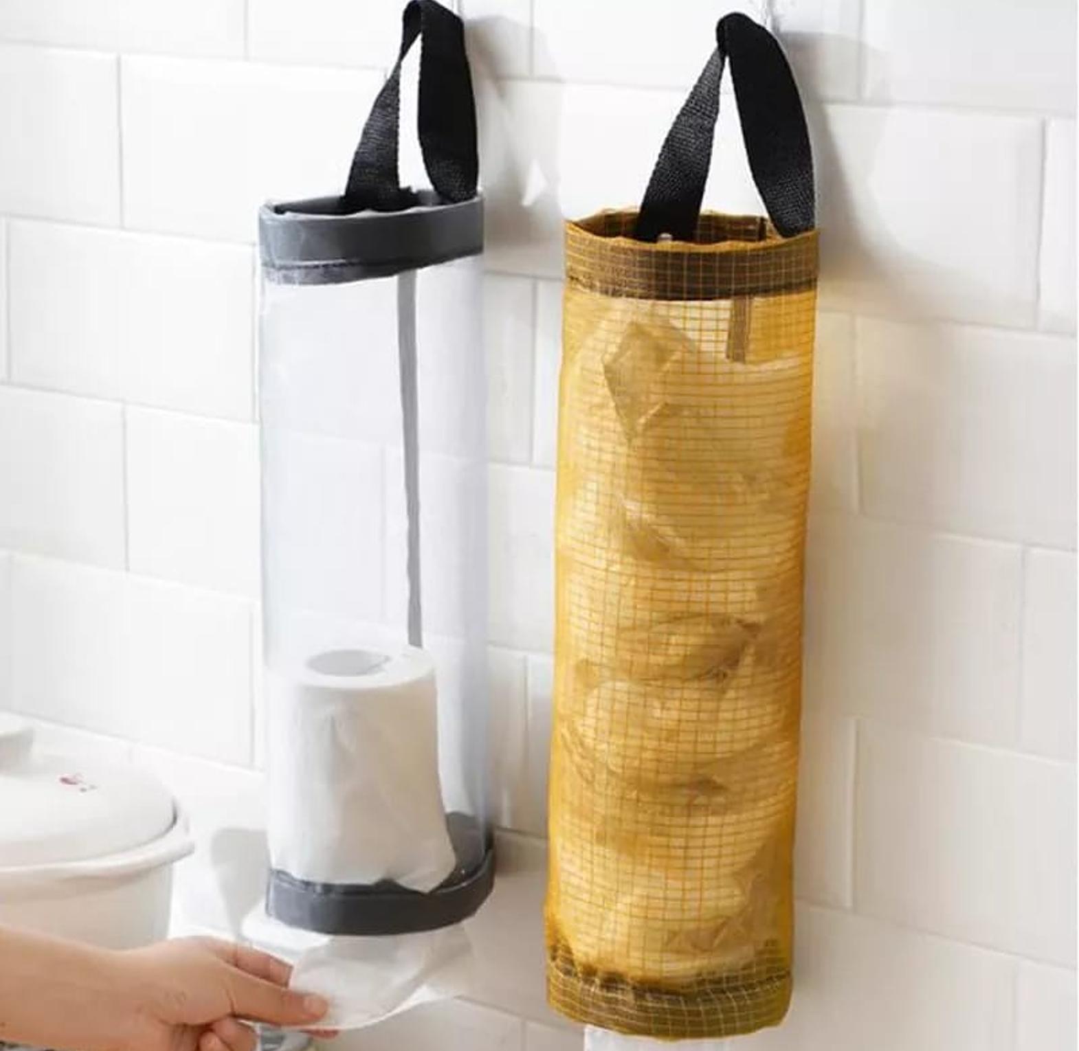 Wall Mount Plastic Bag Holder Dispenser Hanging Storage Trash Garbage Bag Kitchen Garbage Organizer