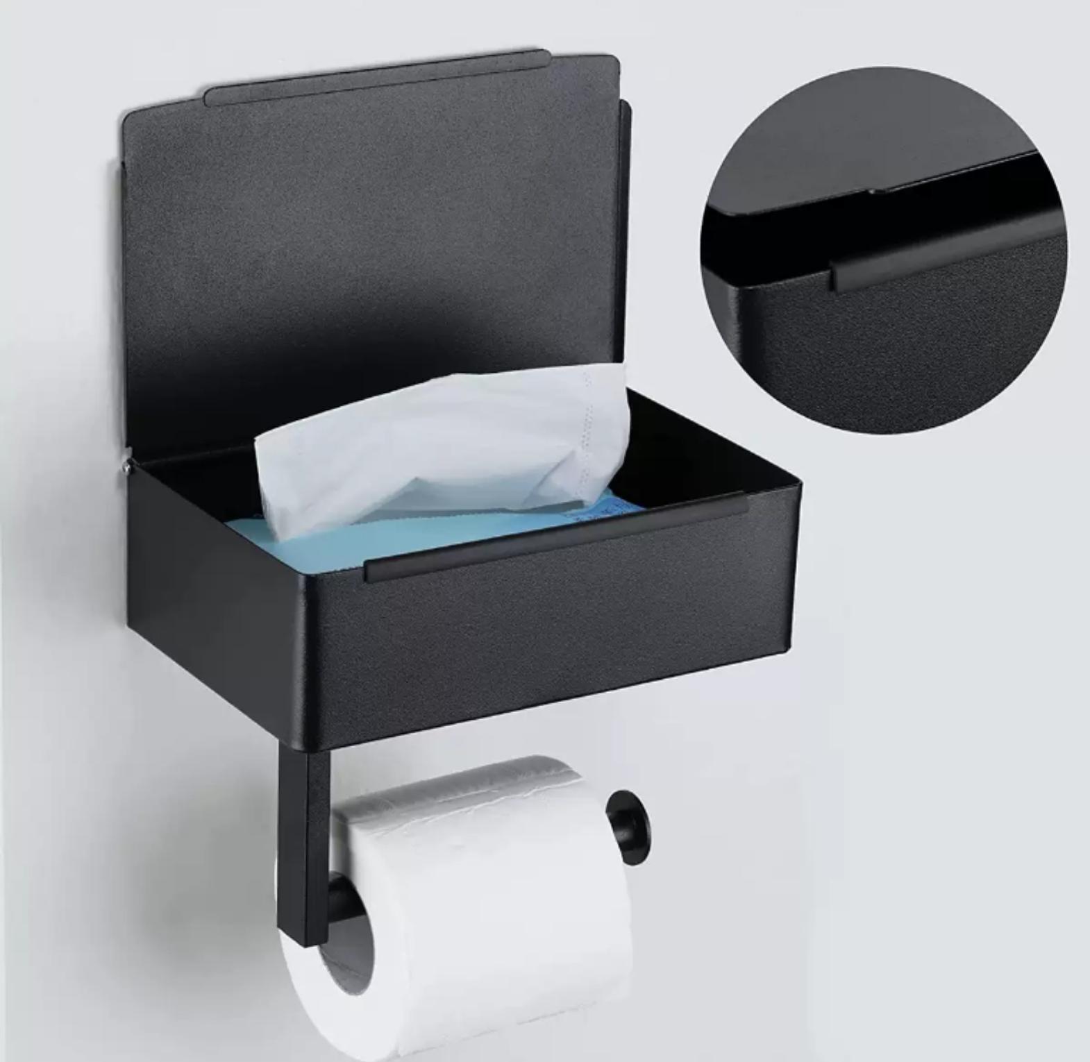 Sleek, space-saving wall mount with a covered tissue box and built-in toilet paper holder. Durable, modern, and perfect for keeping your bathroom neat and organized.